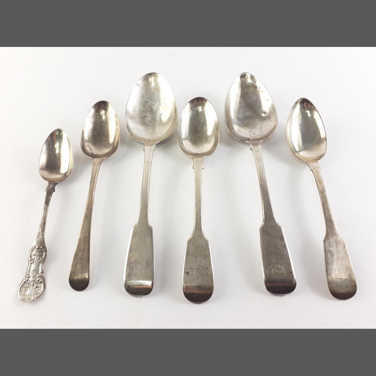 Six antique STERLING SILVER hallmarked spoons. Total gross weight 230g approx.