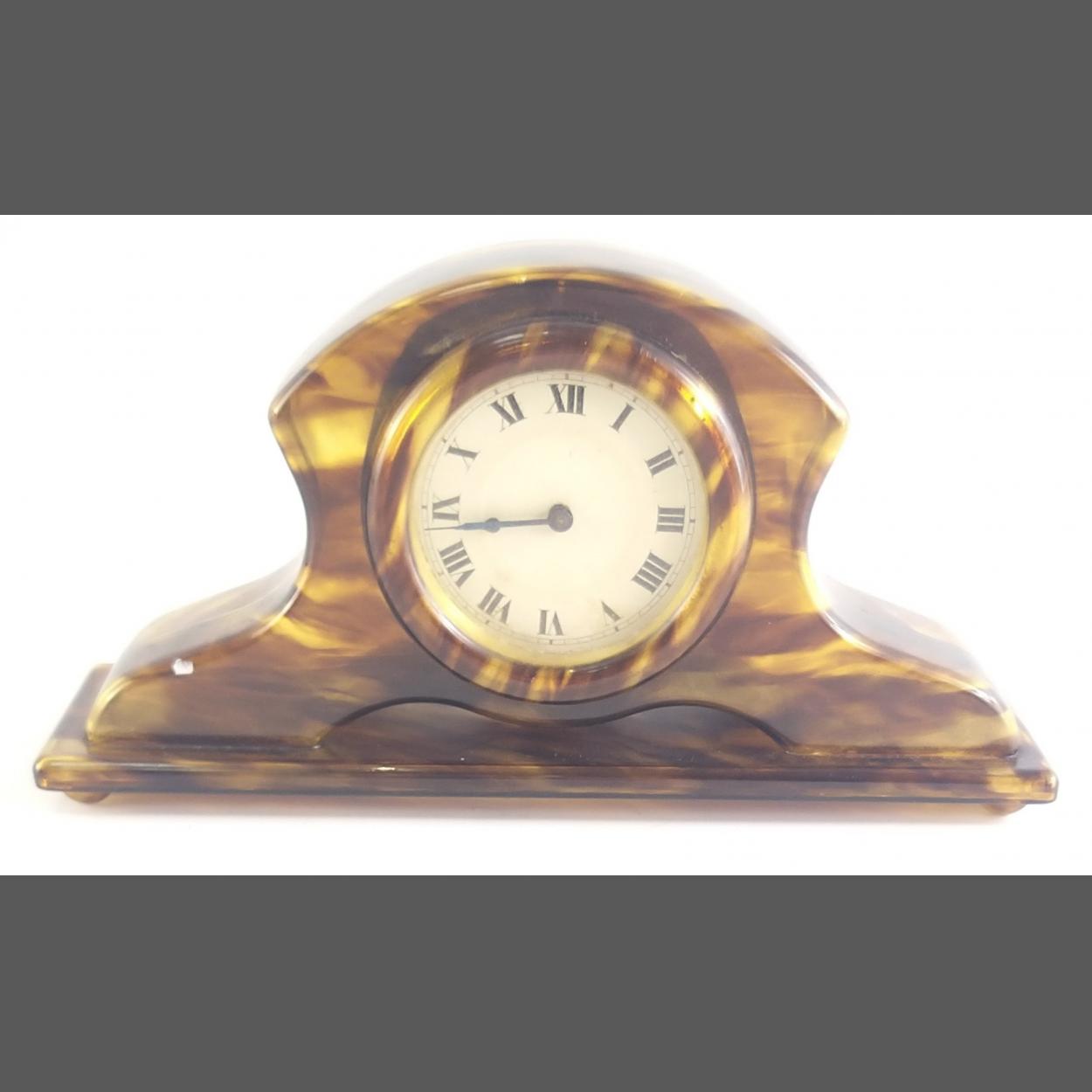 Small faux tortoise shell style German HAG Wurtemberg small mantle clock. Stylish, stiff to wind.