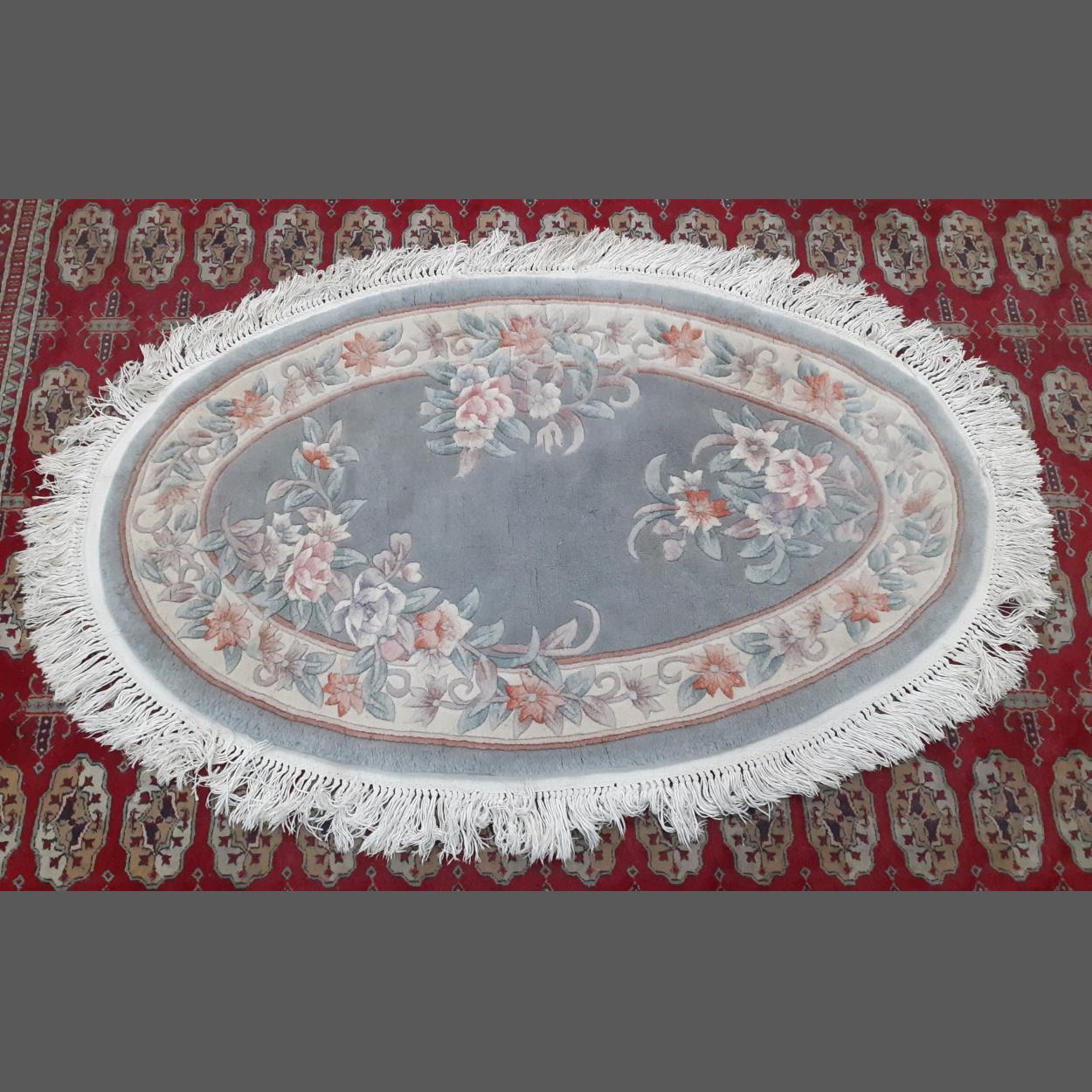 A nice clean good quality oval tassel rug. 145cm approx.