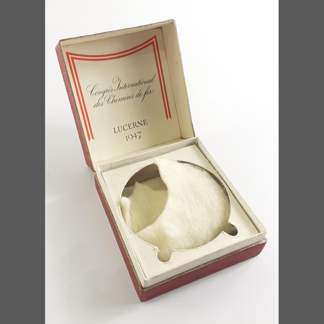 An antique CYMA travel clock watch box in good condition. Congress International des Chemins de Fer. Lucerne 1947.