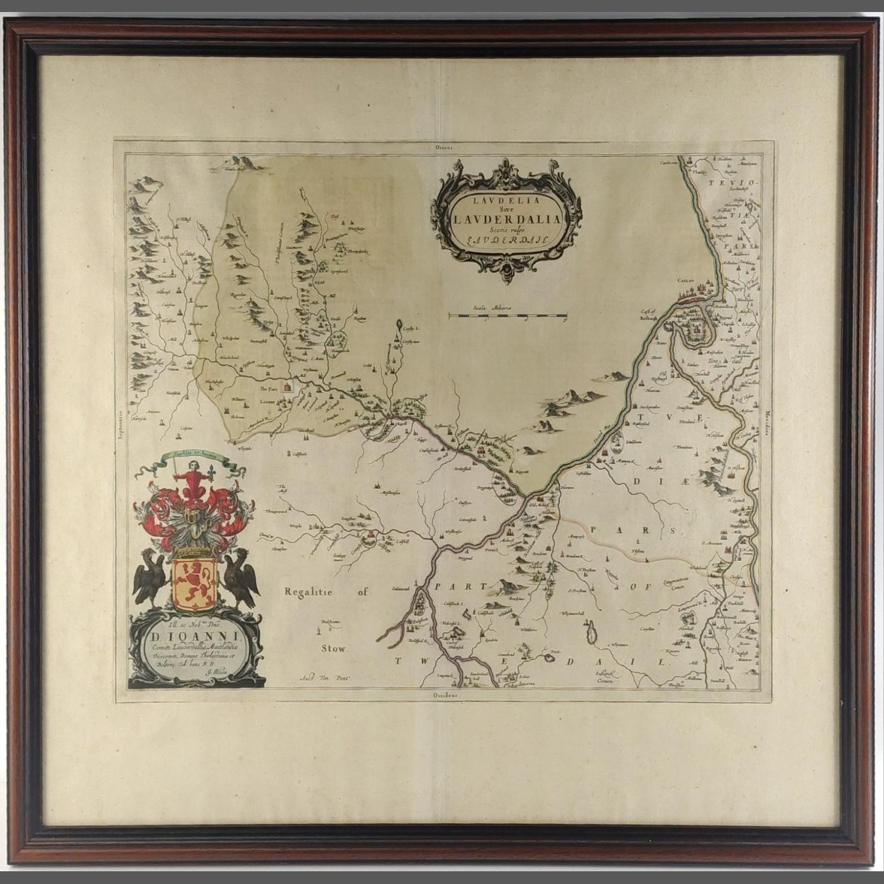 A BLAEU antique map of LAUDERDALE, frame 66 x 58cm approx