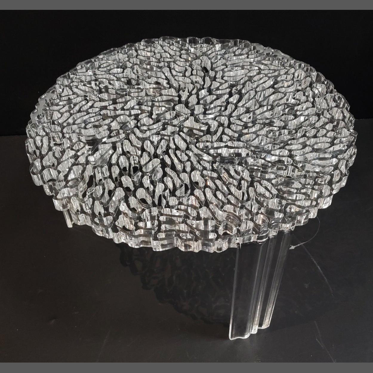 DESIGNER PATRICIA URQUIOLA T-Table Basso Kartell in transparent Perspex reminiscent of embroidery - dimensions 28cm height x 50cm diameter - cost new £220 approx