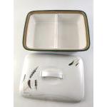 A DENBY Greenwheat lidded two compartment serving dish in good condition. 28cm wide approx.