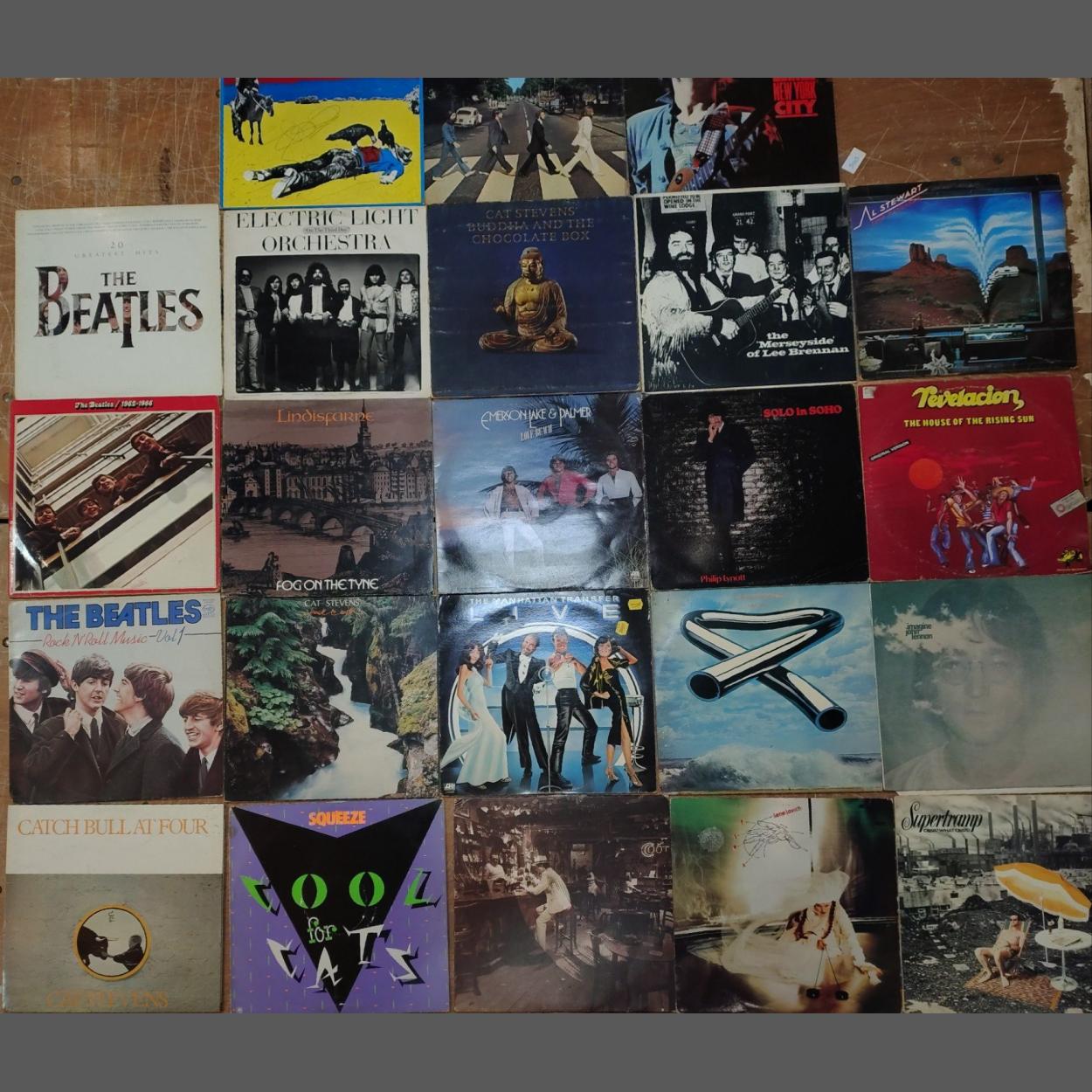 A 20+ collection of LPs to include BEATLES Red album, Volume 1, Cat Stevens, ELO, Tubular Bells, Phil Lynott, Supertramp, Led Zeppelin etc. In older stored condition with some wear to covers.