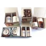 STONEWARE Farm House Kitchen condiment sets. Five boxes, jam & marmalade set, salt & pepper shakers two sets large and smaller, oil & vinegar, spice jars. All boxed and appear unused