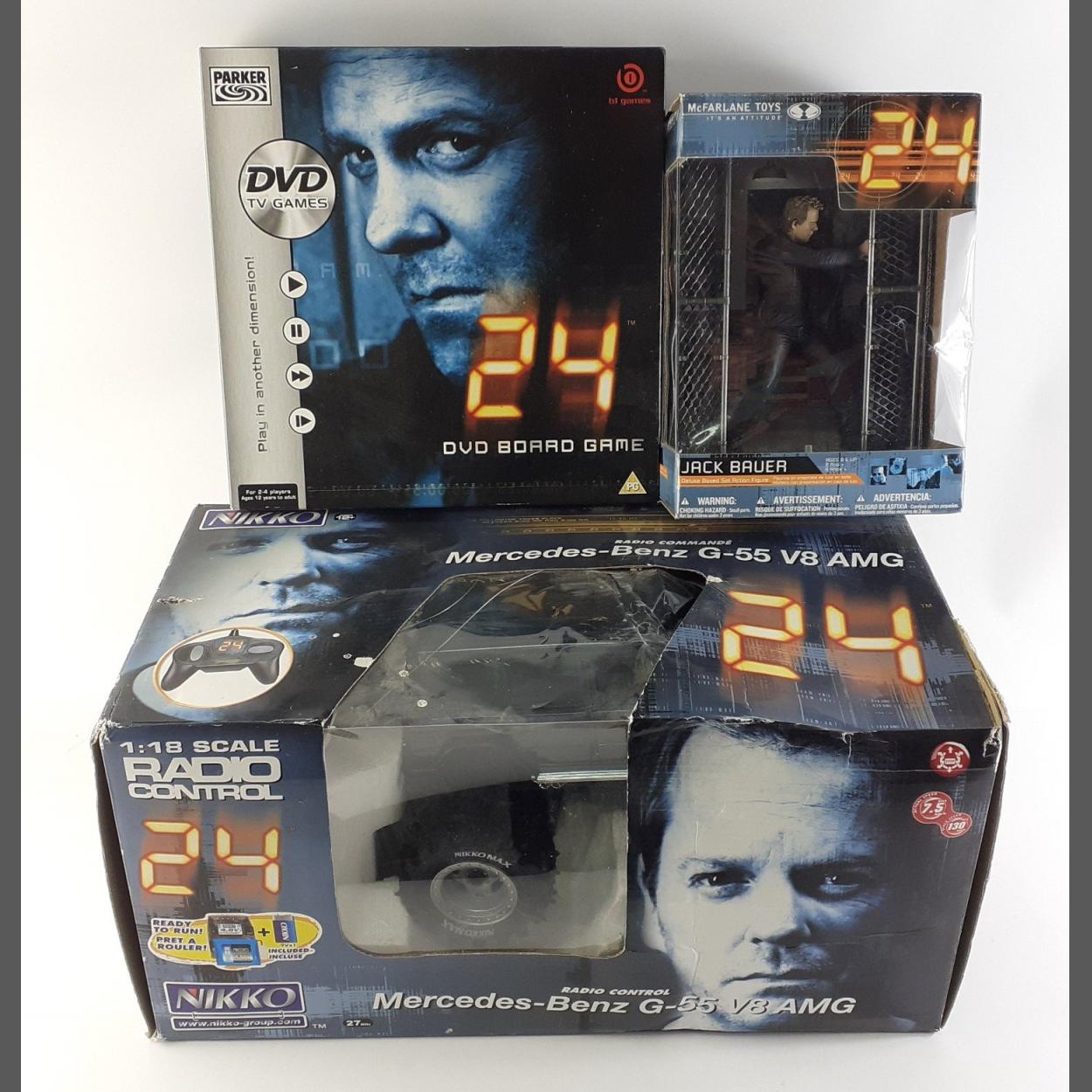 A NIKO radio control Mercedes-Benz G-55 V8 AMG in box, a 24 DVD board game and a boxed Jack Bauer figure.