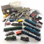 A large railway layout to include track, locomotives, rolling stock, buildings, power units, and much else. A great amount. (6 boxes)