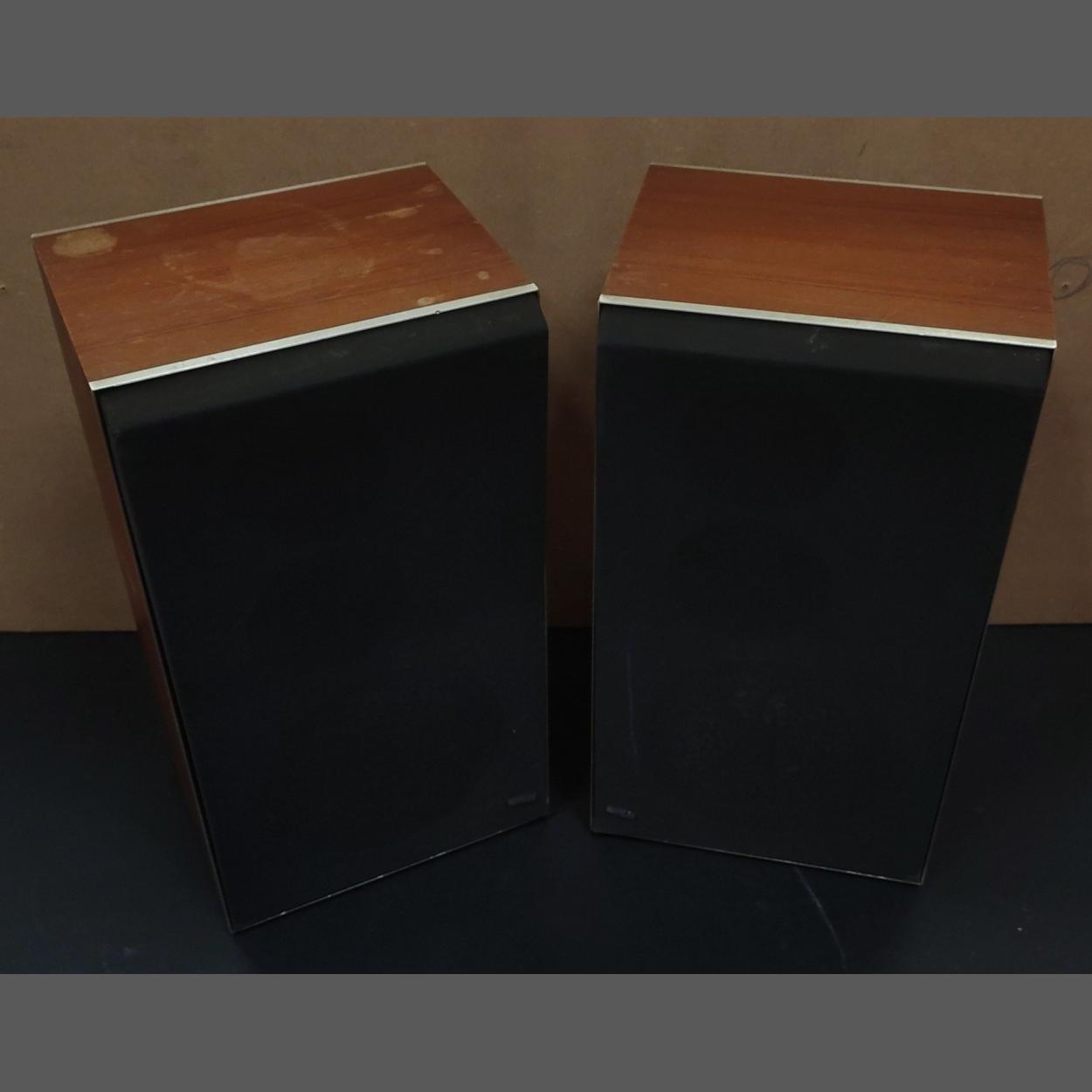 A pair of BANG & OLUFSEN BEOVOX S45 Hi fi speakers. Some light wear to cabinets but all cones intact. 48 x 23 x 23cm approx.