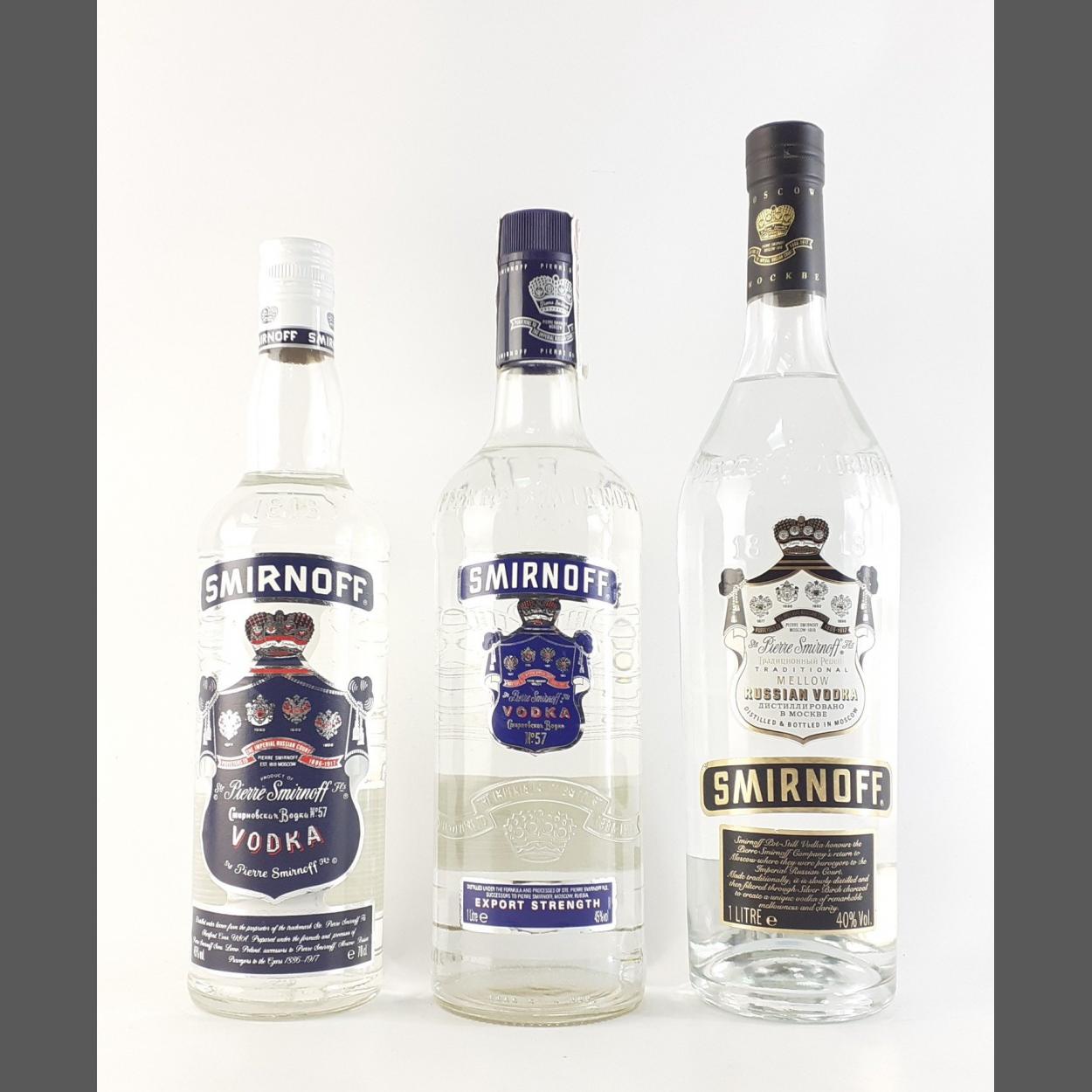 Warm the winter nights with three super bottles of SMIRNOFF VODKA. One 1L Mellow Russian, one 1L Export Strength and one 70cl Blue Label.
