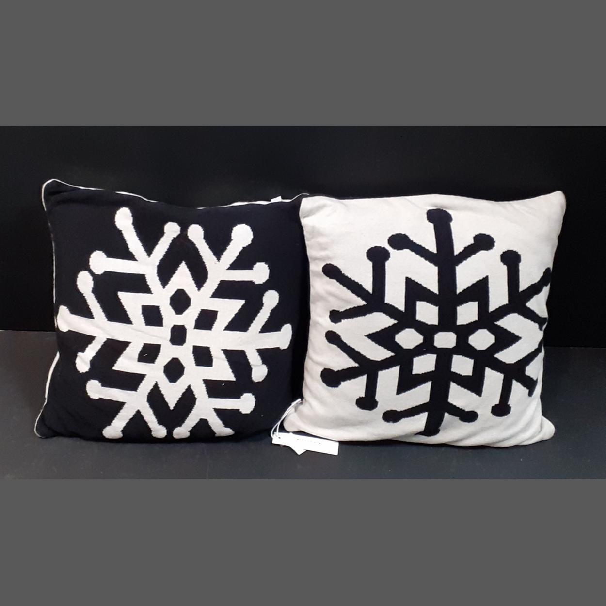 XMAS GIFTING IDEAS! - 2 contemporary Christmas themed snowflake cushions. 35cm diameter. RRP £24.99 each