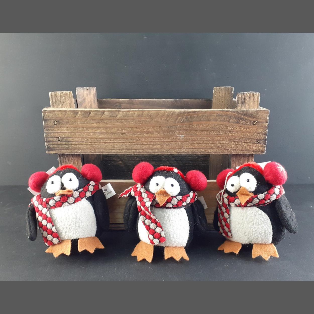 XMAS GIFTING IDEAS! - Vintage wooden crate containing 3 HEAVEN SENDS stuffed penguins table decorations. RRP £5 each.