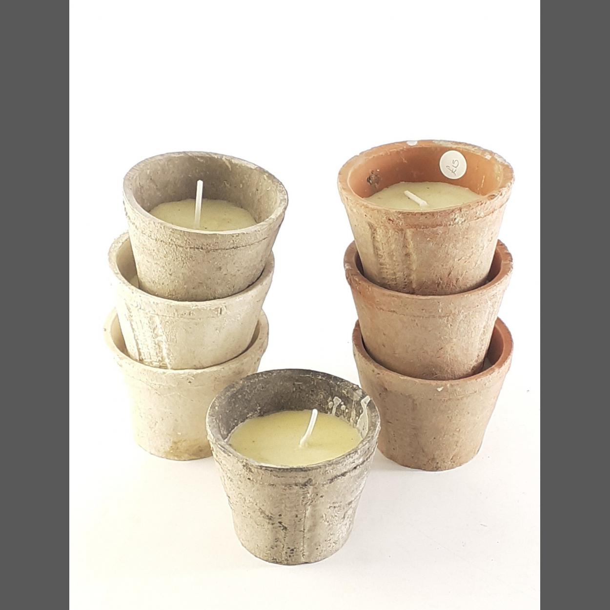 XMAS GIFTING IDEAS! - A set of 7 distressed clay pot shaped candles. Coloured white, grey and terracotta. RRP £105