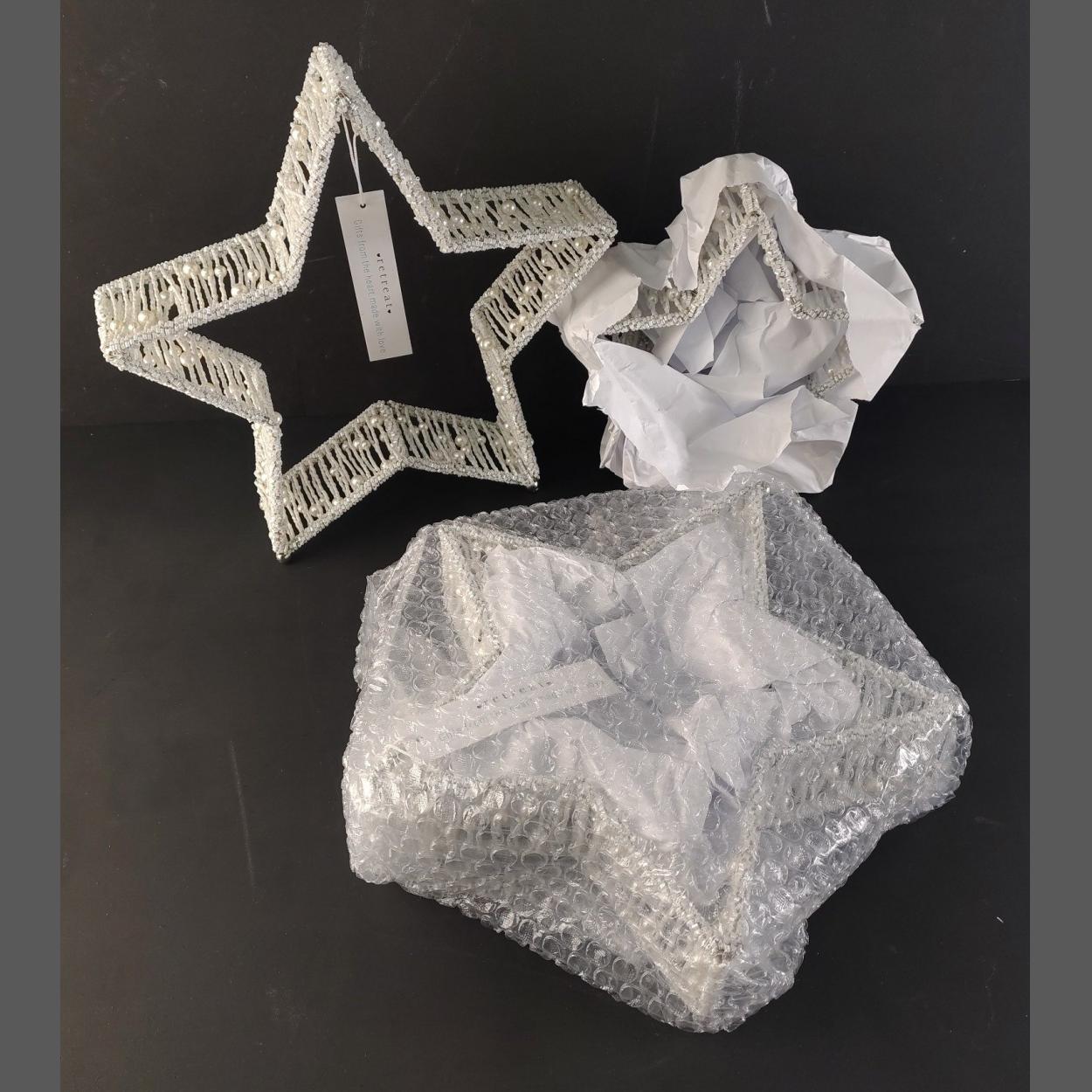 XMAS GIFTING IDEAS! - 4 brand new RETREAT white beaded STAR mantelpiece decorations.