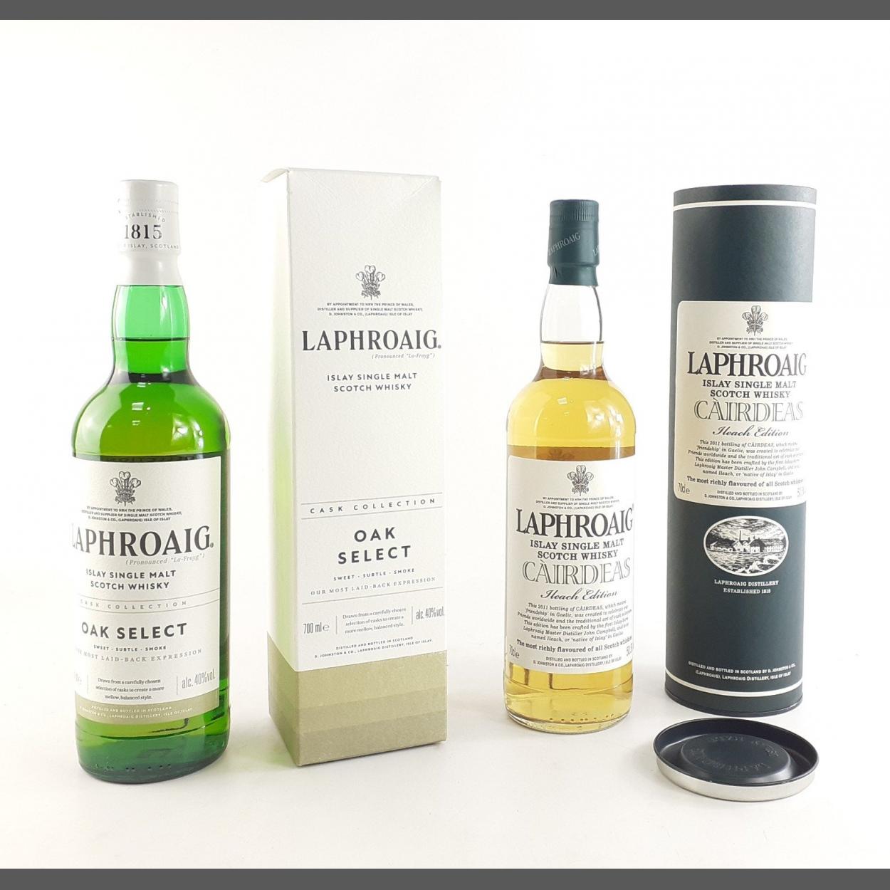 LAPHROAIG CAIRDEAS Ileach edition - single malt Scotch whisky - 70cl - 50.5% volume also LAPHROAIG OAK SELECT cask collection -single malt Scotch whisky - 70cl - 40.0% volume - in good condition
