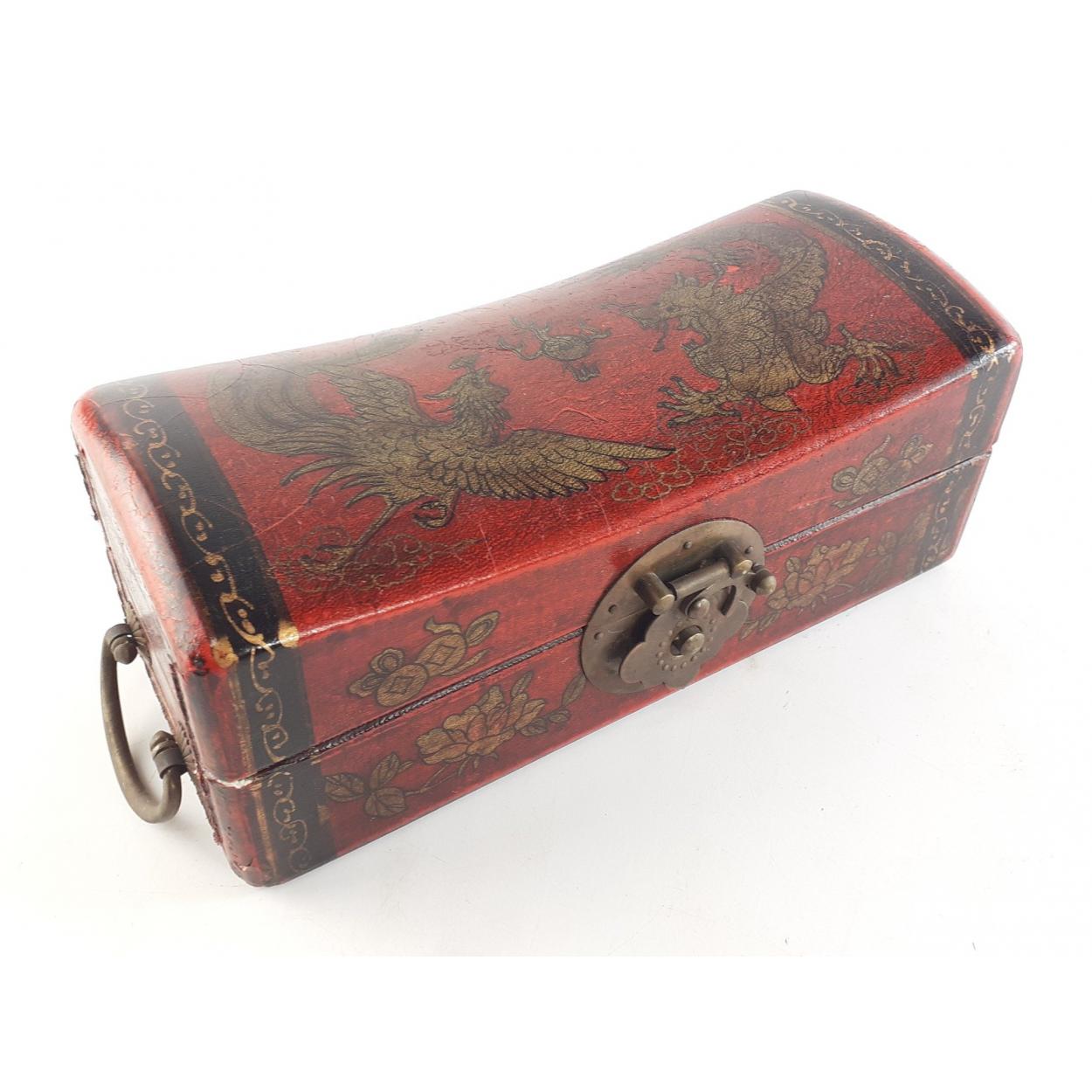 A lacquered and hand-painted pillow box with erotic scenes to the interior 22 x 10 x 10cm approx
