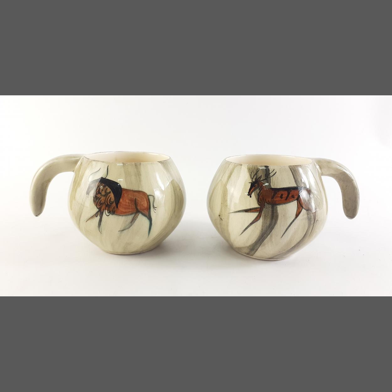 COOL! - A pair of mugs with ancient wall art design, approx 8cm tall.