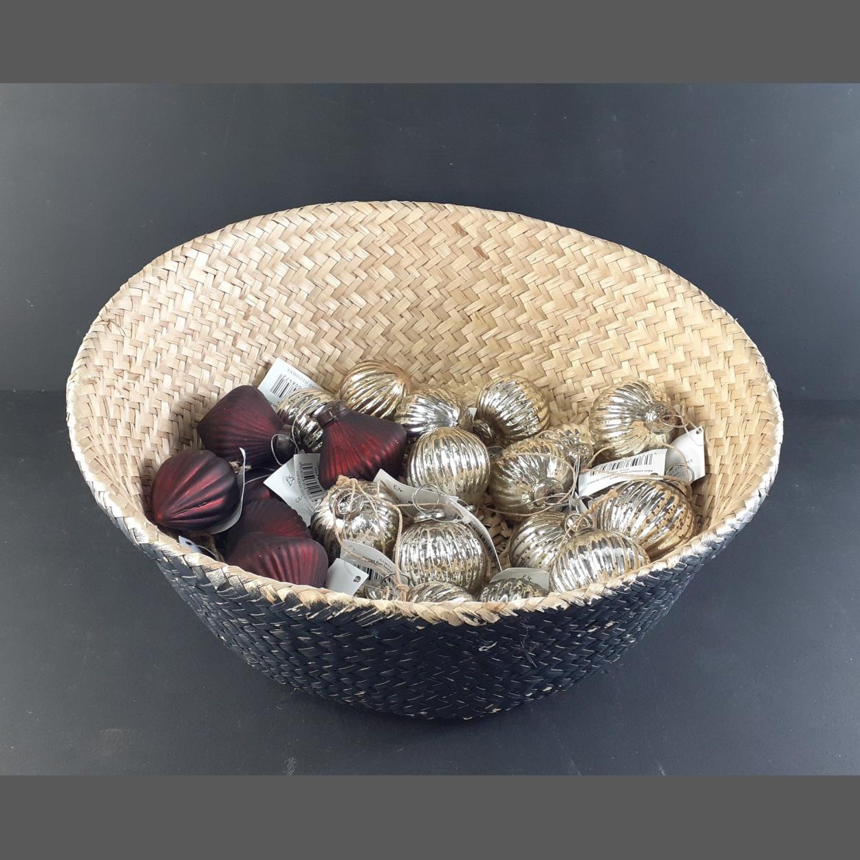 XMAS GIFTING IDEAS! - A brand new woven basket containing 20 quality CHRISTMAS BAUBLES in dark red and silver. RRP £4 per bauble.
