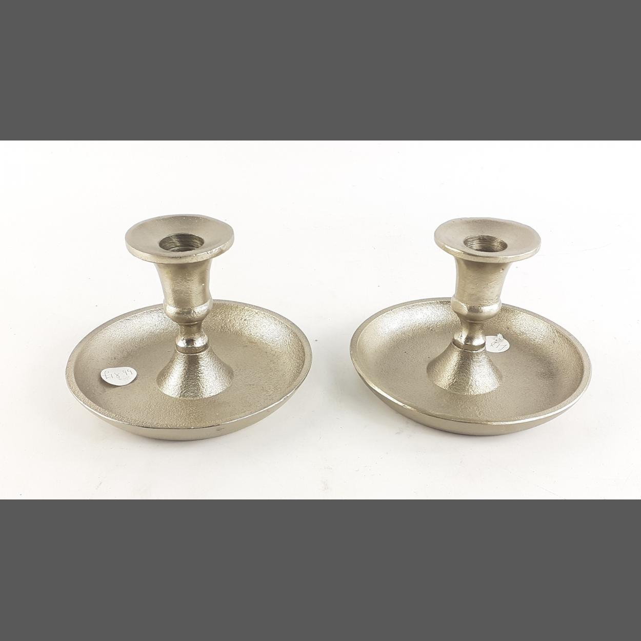 XMAS GIFTING IDEAS! - A pair of silvered metal WIKHOLHM form wee Willie Winkie candle holders.