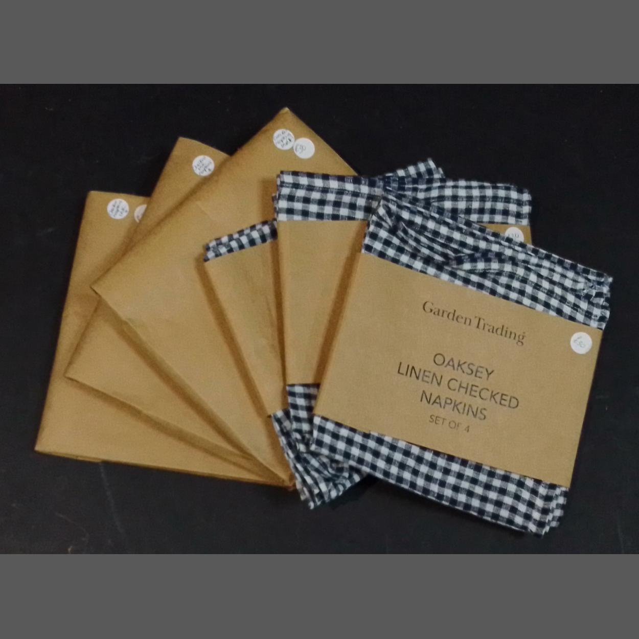 XMAS GIFTING IDEAS! A great set of six brand new GARDEN TRADING Oaksey Linen checked Napkins. Each pack contains four napkins. All new.