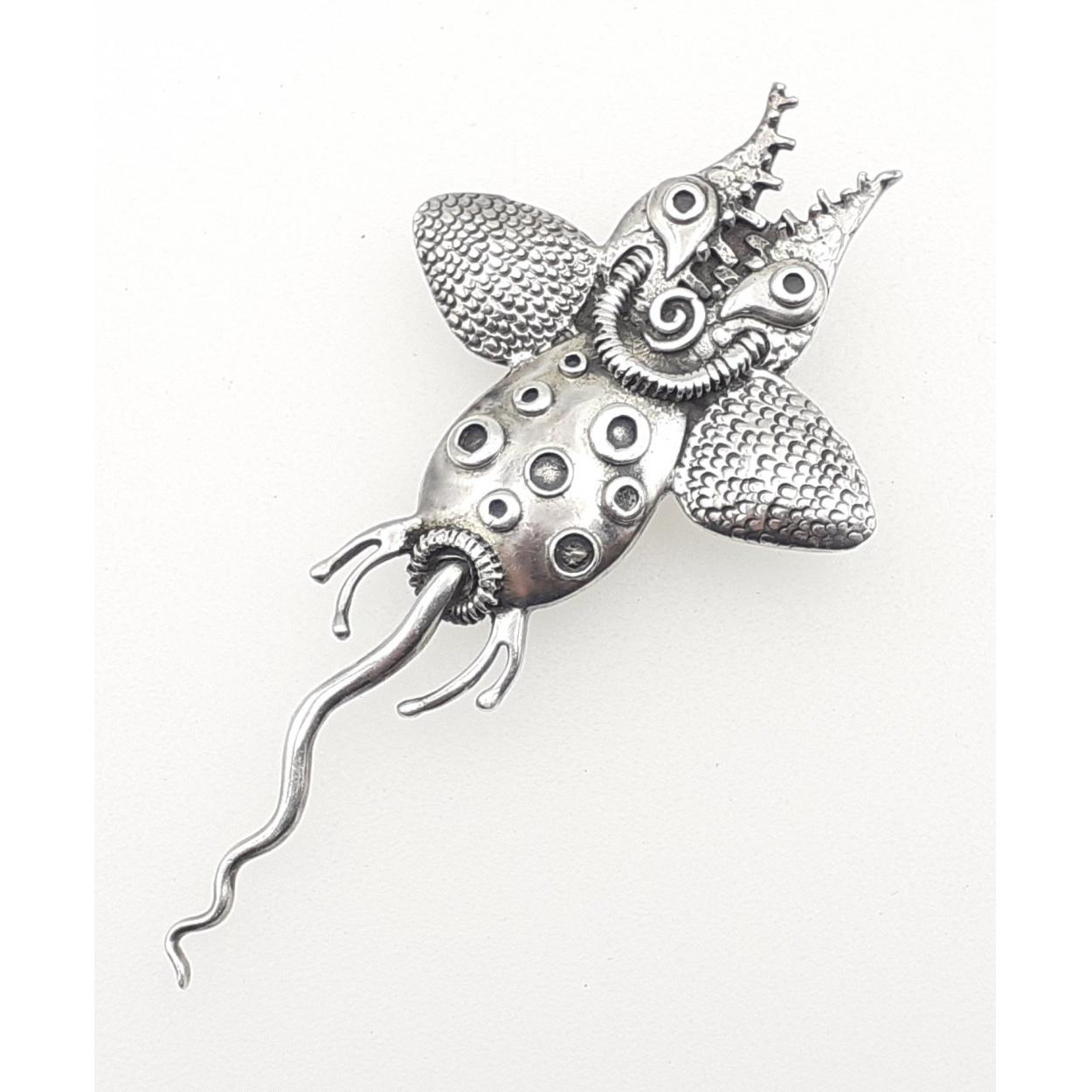 A sterling silver kilt pin in abstract unusual insect design. Hallmarks for Edinburgh 1998, designed for the band SHOOGLENIFTY by Brenda H Temple. 7cm approx. Weight 11.6g approx.