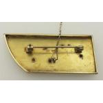 UMMMMM Unusual angular brooch with blue enamel design. HAS INDISTINCT MARKS.