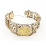 PHENOMENAL!! An amazing antique 9ct gold filigree square panel bracelet set with a full 1912 Sovereign. Hallmarks to both clasp ends. Weighs an astonishing 42.9g approx including the sovereign.