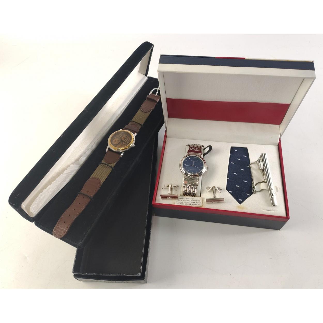 An ANUCCI tie and watch gift set and also a boxed FRANKLIN MINT Labrador dog watch.