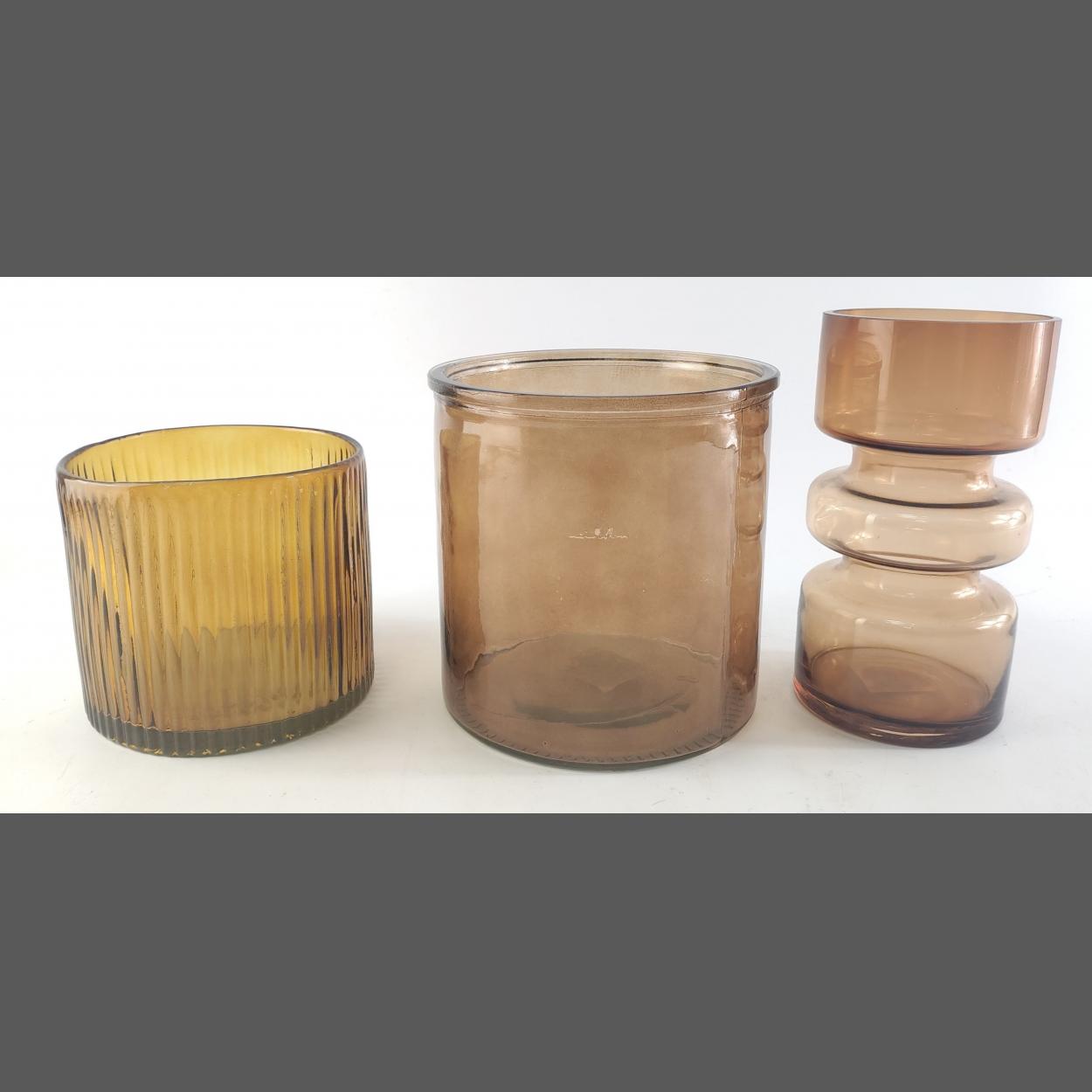 XMAS GIFTING IDEAS! Three smoky glass vases tallest 17cm approx.