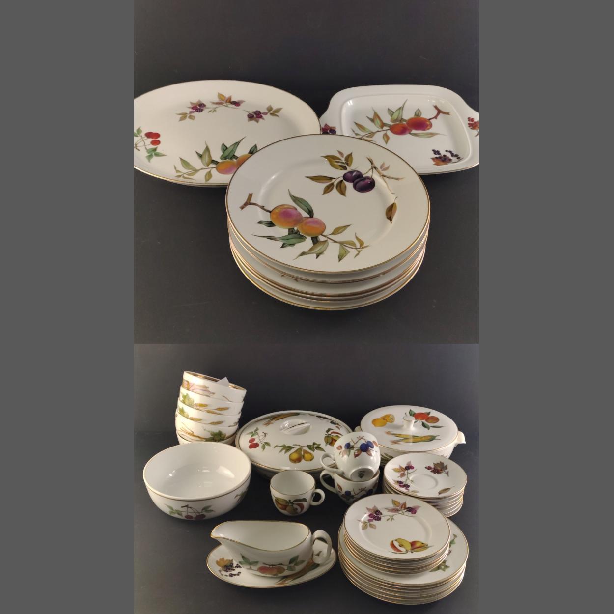 ROYAL DOULTON EVESHAM part dinner service comprising large and smaller serving dishes, two tureen / lidded servers, seven large plates, side plates, cups and saucers and others.