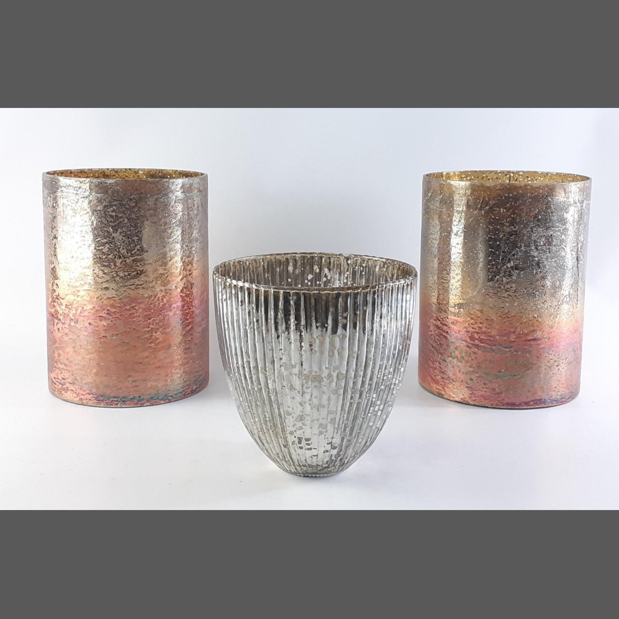 A CULINARY CONCEPTS medium Seville fluted candle holder (16cm approx), and 2 copper ombre metallic glass medium candle holders,
