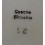 Part Czechoslovakian Lustre ware coffee service in blue and black with coffee pot, four cups and saucers and two small plates.