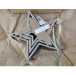 A set of three RETREAT nested decorative wooden grey Mantelpiece stars The largest 33cm across