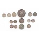 A small collection of interesting silver content coinage to include 1889 Victoria crown, 1887 shilling and others of interest, total gross weight 63g approx.