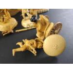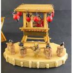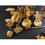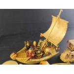 A lovely collection of Oriental figures in a variety of positions including a junk with 9 men (17 x 20cm approx), lady in a rickshaw, a group of musicians, a fisherman plus others