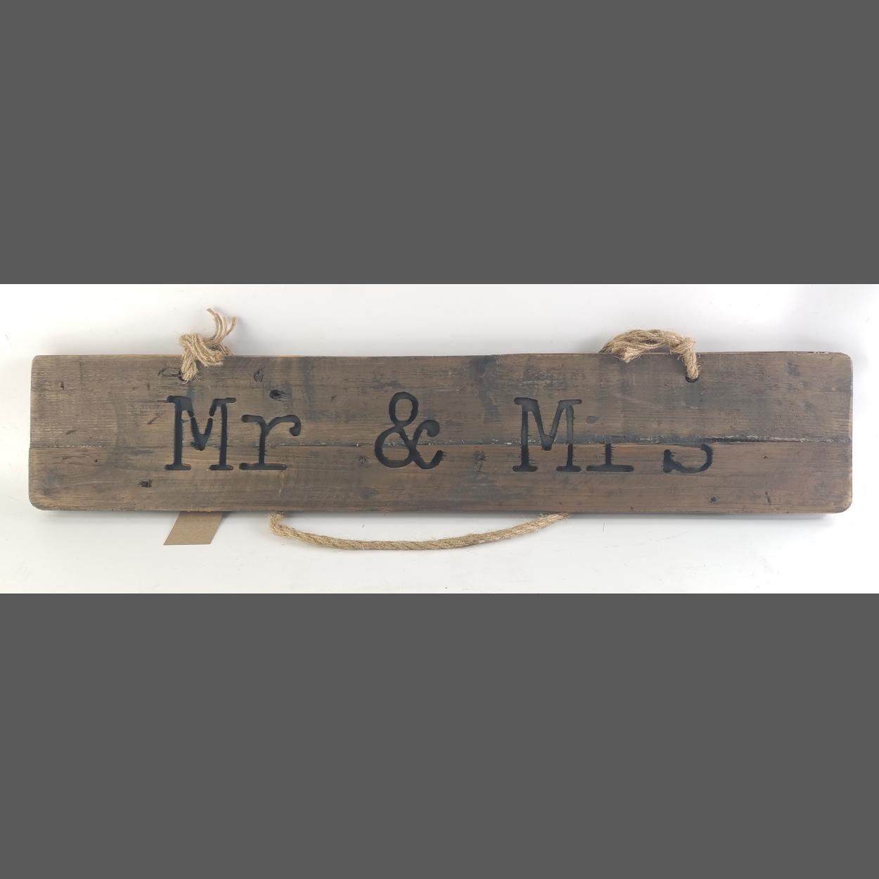 XMAS GIFTING IDEAS! A Mr & Mrs wooden wall hanging, measures 65cm approx. RRP £29.99.