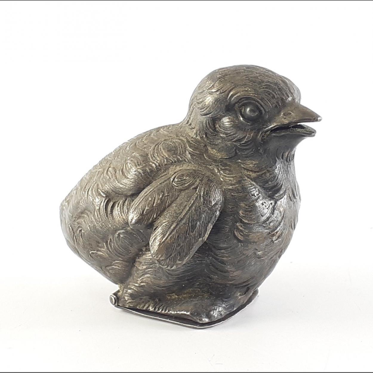 A lovely little unmarked white metal bird salt shaker. Nicely sculpted and detailed 5cm tall, 78g approx.