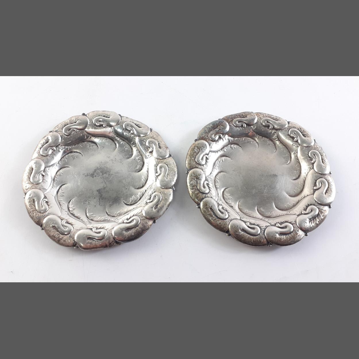A lovely pair of STERLING SILVER stamped trinket dishes, 8cm across, weight 50g approx