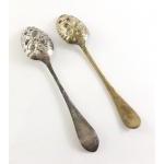 Two large BERRY SPOONS one brass and one WALKER & HALL plated. Both 23cm long and in nice condition. Very attractive spoons.