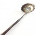 An 1811 hallmarked silver TODDY LADLE with an inset 1739 GEORGE II Half Crown coin. Turned balleen handle 35cm long. A lovely piece !
