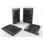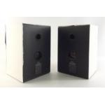 A pair of MORDAUNT-SHORT MS10 speakers. In good useable order with intact cones. 29cm tall. Overpainted in white and wear to grill covers.