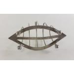 A fully hallmarked London 1909 toast rack on ball & claw feet by William Hutton & Sons Ltd/ 13cm across. 87g approx.
