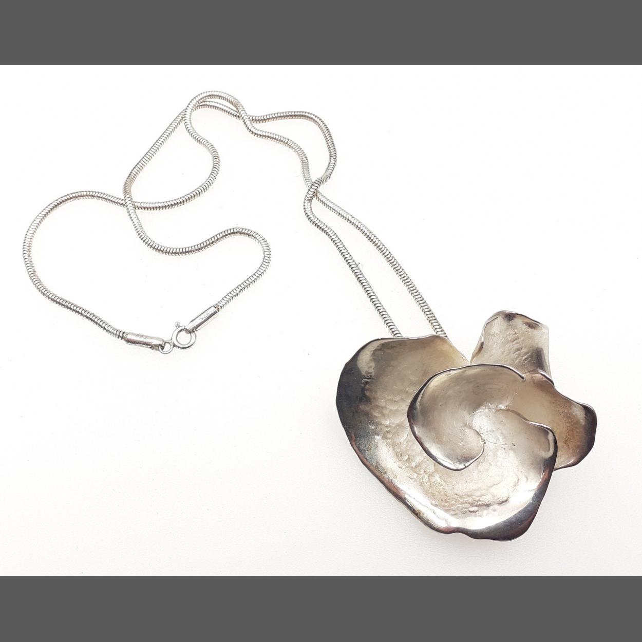 A fully hallmarked STERLING SILVER GUNTHER design sterling silver brooch in the form of a rose on silver 925 rope chain BAH PALLAS. Gross weight 34.4g Insurance valuation from 1989 of £161.