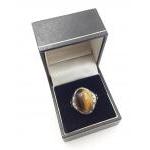 UMMM A stunning unmarked yellow metal ring with TIGER EYE centre. Size X gross weight 6.3g approx.