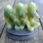 Superb green Jade / Jadite three wise monkeys figurine on plinth. In lovely condition. 11cm across