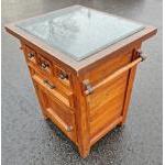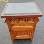 A MARBLE TOPPED BUTCHER'S BLOCK with 4 drawers and one cubberd in good condition