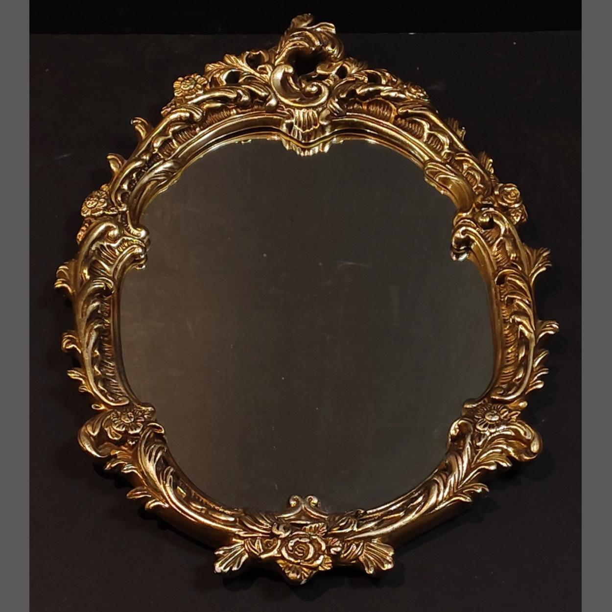 Vintage plaster Roccoco style oval mirror. L: 62cm W: 43cm approx. Some flakes to gilding