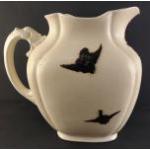 Doulton Oriental inspired crackle glaze porcelain jug with tree and crane decoration and dragon handle. Base marked US PATENT 314.002. H: 26cm L: 30cm approx