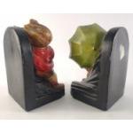 Vintage set of Bretby 'Mabel Lucie Atwell' ceramic bookends with young girl with umbrella in strong wind. One marked March, other marked April. Base marked 'BRETBY MADE IN ENGLAND 3234'. Some minor damage noted. H: 13cm approx