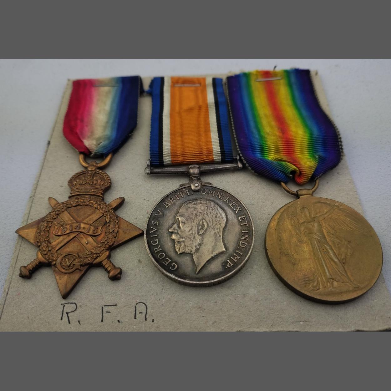 WWI Medal Trio 1914-1915 Star, BWM and Victory. Awarded to 89924 S-SMH W Brodie R.F.A & R.A.