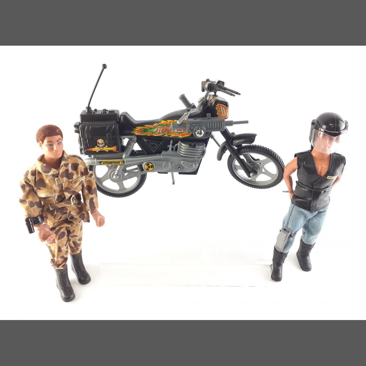Two ACTION MAN STRIKE FORCE figure in combats and Leathers with STRIKE FORCE motorcycle.